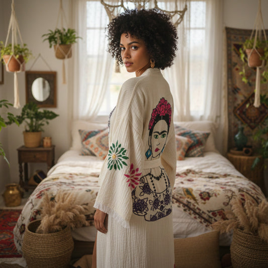 Frida Bloom Hand-Printed Muslin Kimono Robe