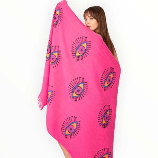 Fuschia Eye Block Print Turkish Towel Pestemal