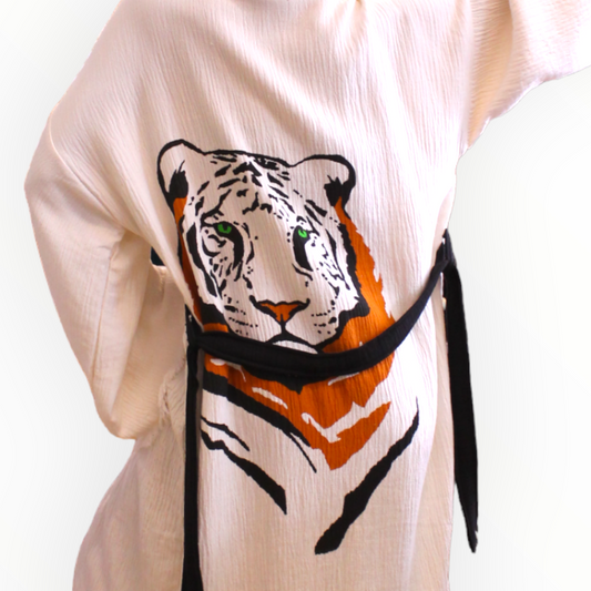 Hand-Made Block Print Leopard Kimono Robe Kaftan