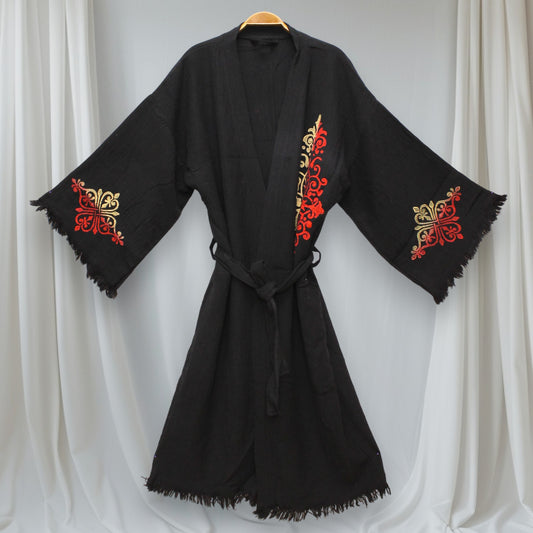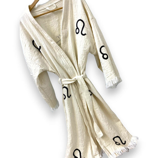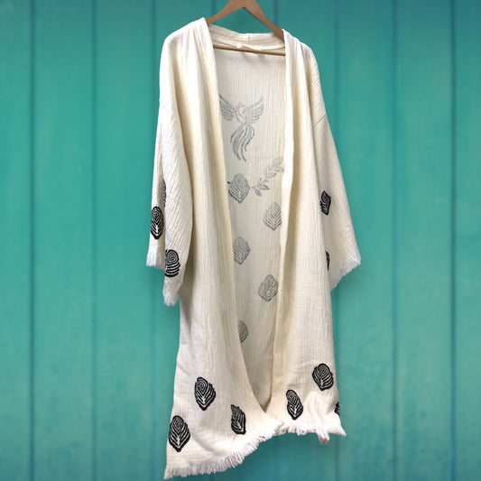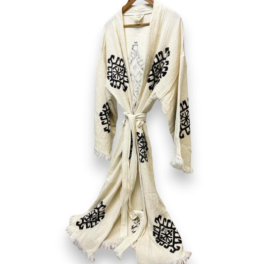 Hand-Made Block Print Turkish Towel Kimono Robe Kaftan