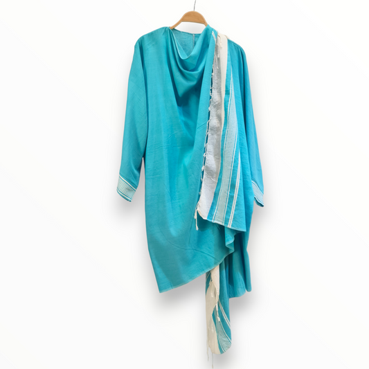 Hand-Woven Natural Cotton Blue Coral Pattern Turkish Towel Kimono