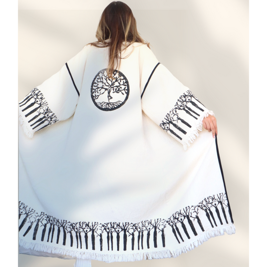 Handmade Natural Turkish Cotton Block Print Kimono Tree of Life