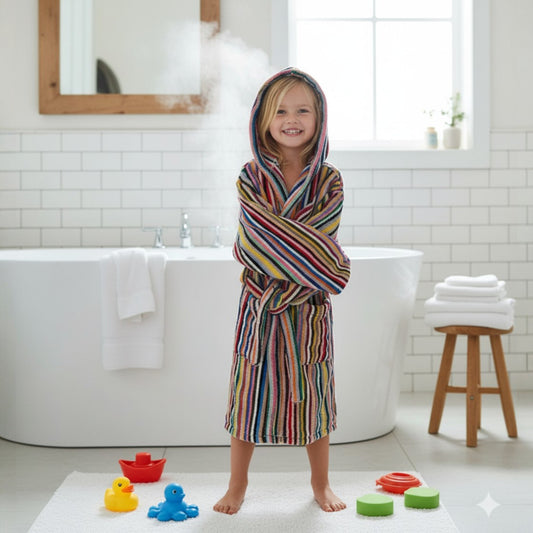 Handwoven Natural Turkish Cotton Terry Kids Bathrobe Multi Color Stripe