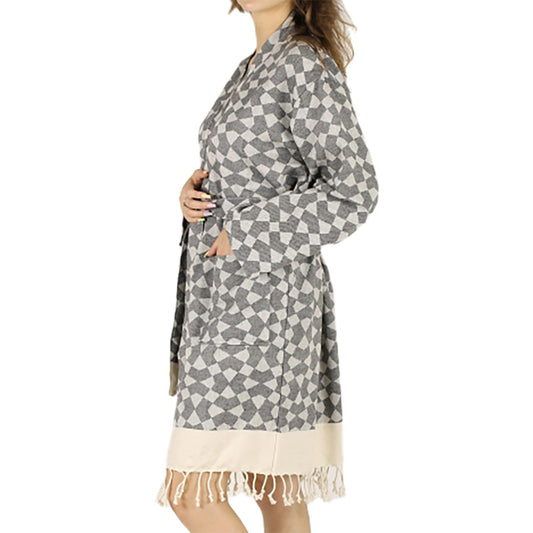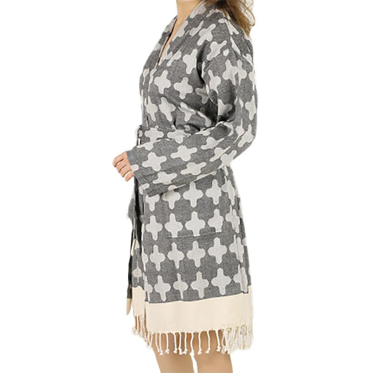 Kimono Bathrobe Natural Cotton Turkish Towel Grey