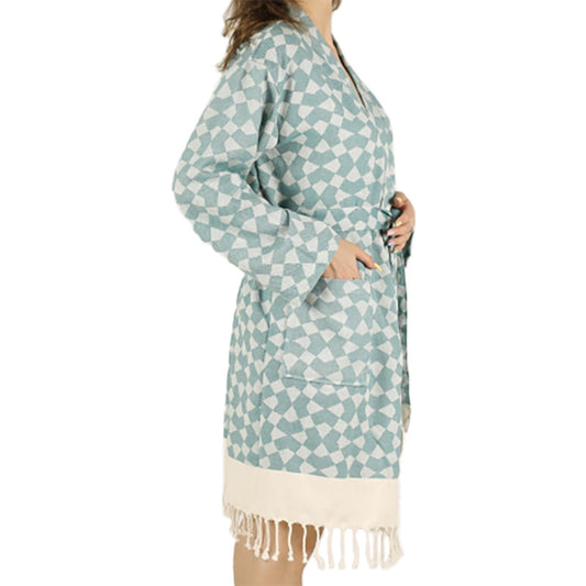 Kimono Bathrobe Natural Cotton Turkish Towel Green