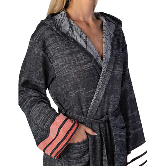 Kimono Bathrobe Natural Cotton Turkish Towel Black