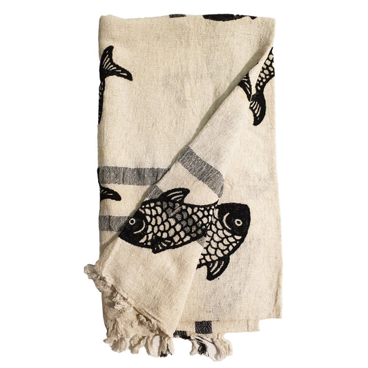 Linen Turkish Towel Pestemal Shahmaran Pattern