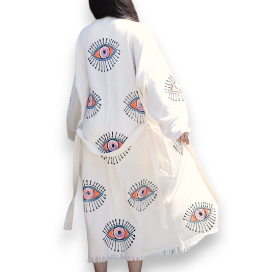 Pestemal Kimono Bathrobe Hand Print Eye Design