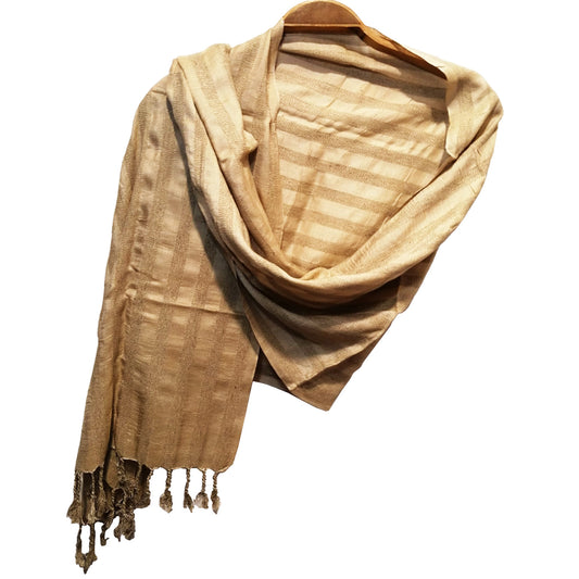 Pure Raw Silk Hand-Woven Scarf Yellow Stripes