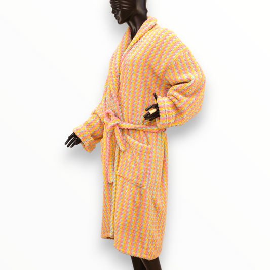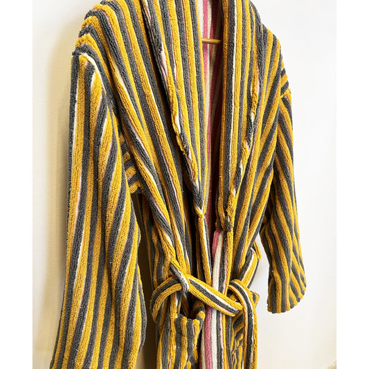 Turkish Terry Towel Bathrobe Yellow Pink Stripe Design