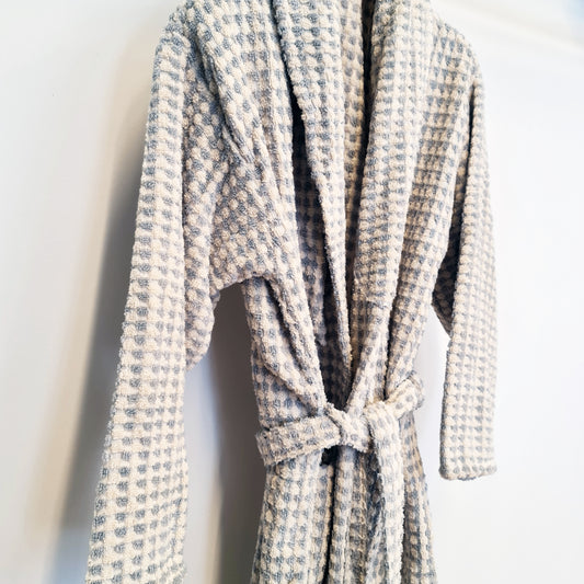 Turkish Terry Towel Bathrobe Damascus Design Grey