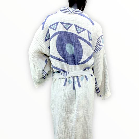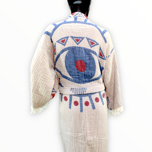 Turkish Towel and Kimono Bathrobe Set Evil Eye Design