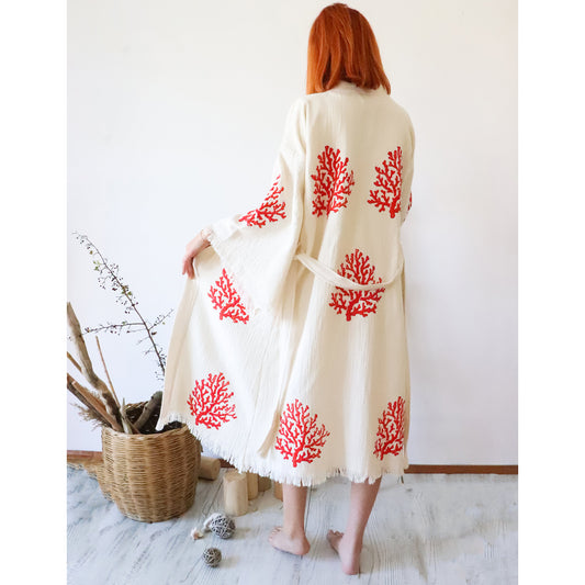 Turkish Towel Coral Kimono Bathrobe
