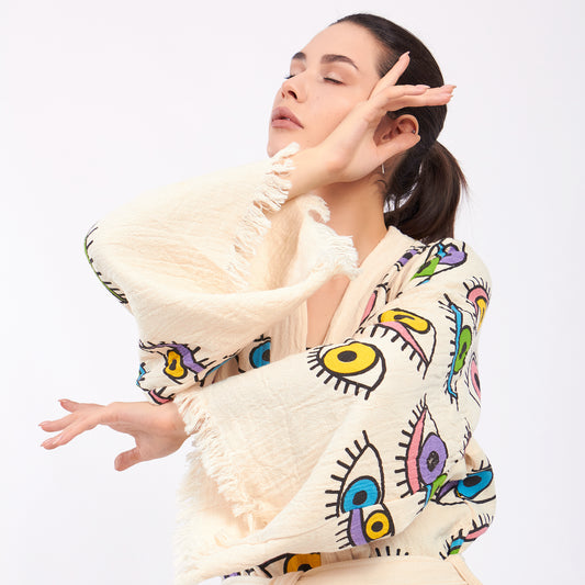 Turkish Towel Eye Kimono Kaftan Bathrobe - Eye Kimono Robe