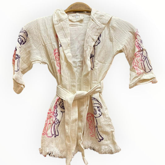 Turkish Towel Kimono Bathrobe Brown Eye Design Natural