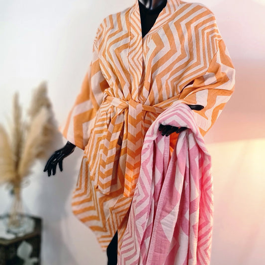Turkish Towel Kilim Design Pink Kimono Towel Set