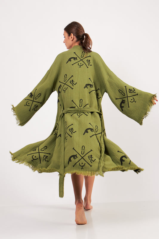Turkish Towel Kimono Bathrobe Ancient Design Green