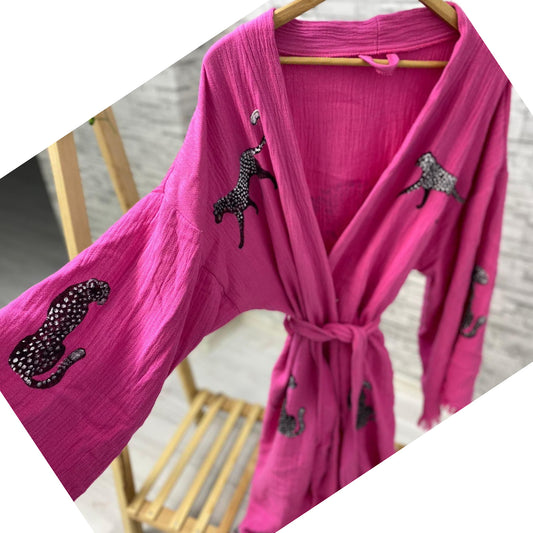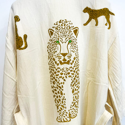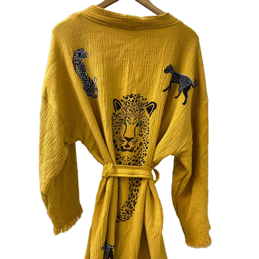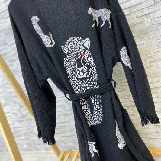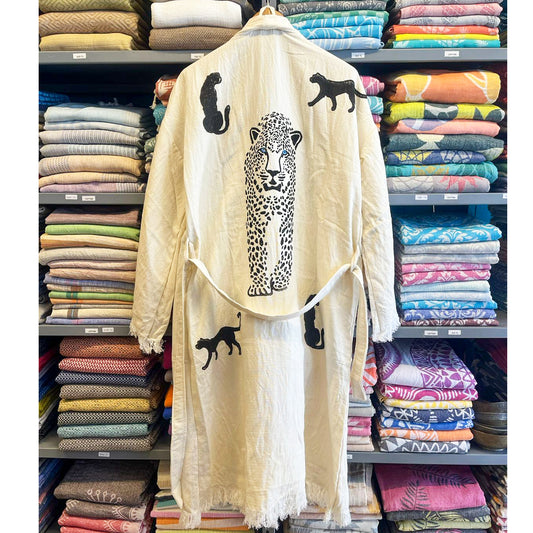 Turkish Towel Kimono Bathrobe Tiger Design Natural