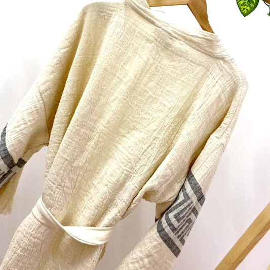 Turkish Towel Kimono Bathrobe Pyramid Design Natural