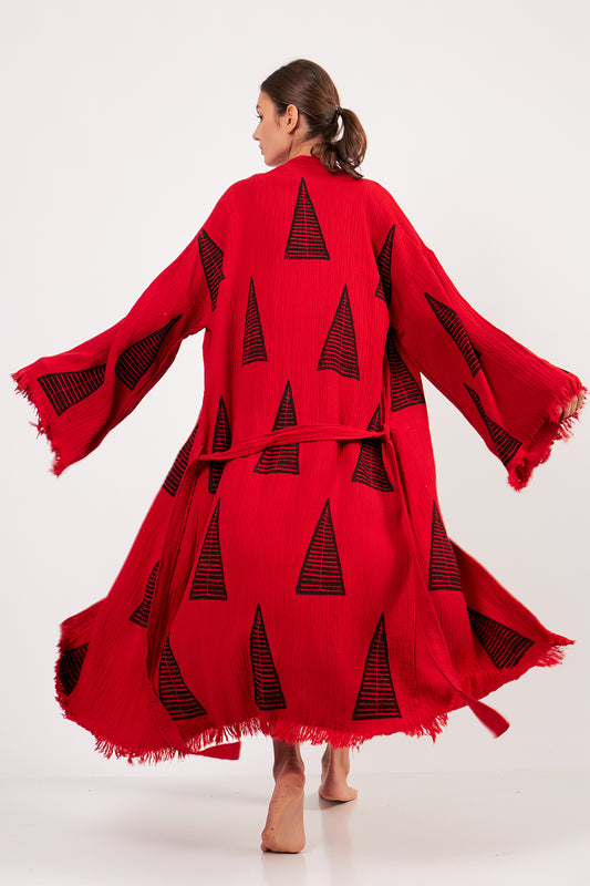 Turkish Towel Kimono Bathrobe Pyramid Design Red