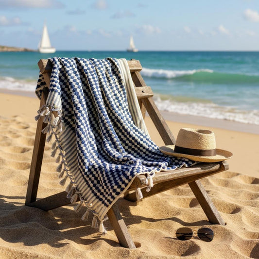 Turkish Hammam Bath Terry Towels Indigo Stripe
