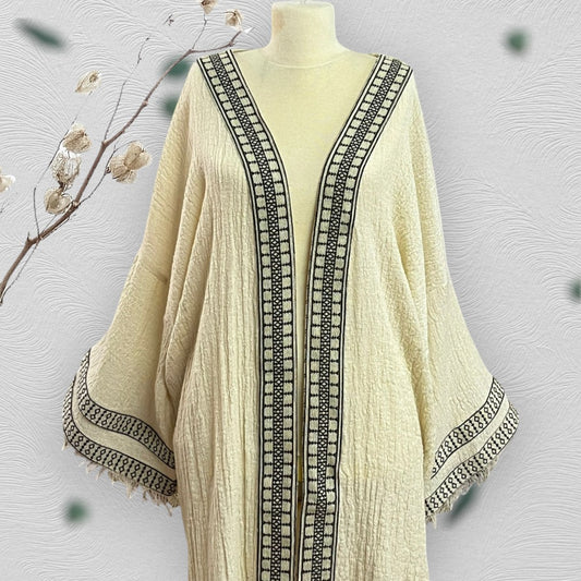 Hand Made, Hand Woven Curly Yarn Fabric Kimono Kaftan