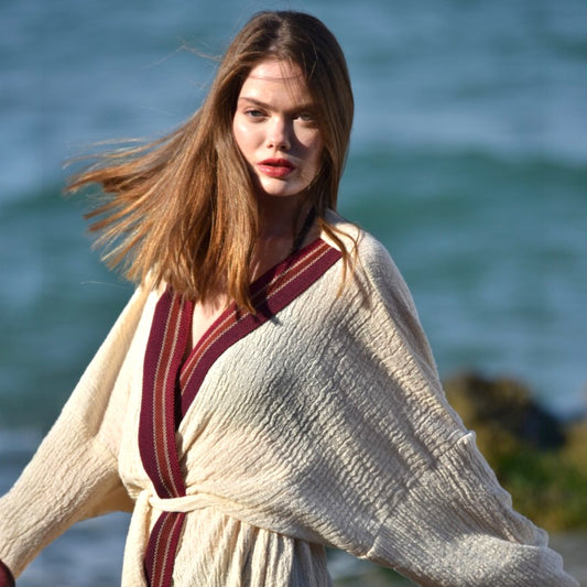 Anatolian Hand-Made Hand-Woven Curly Yarn Fabric Kaftan- Limited Production