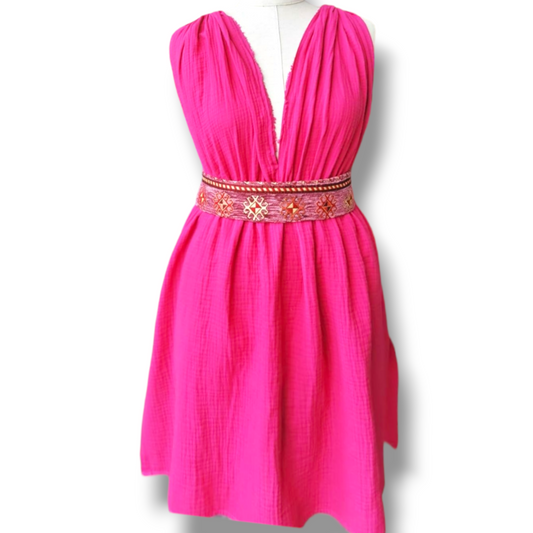 Authentic Turkish Hand-Woven Dress: Exquisite Crimped Yarn Fabric