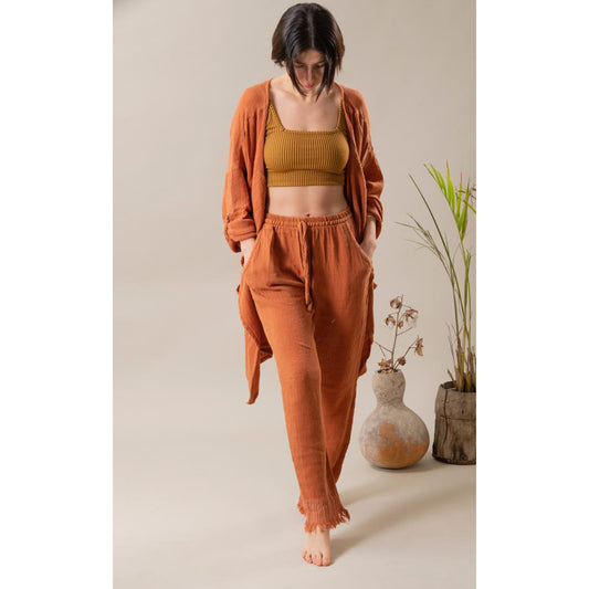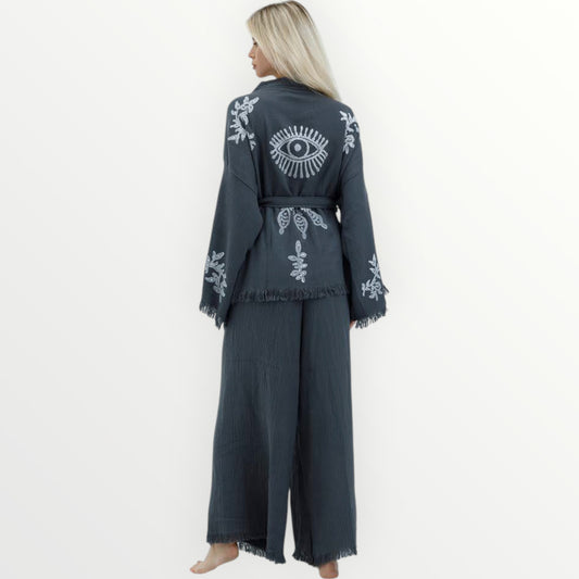 Evil Eye Natural Cotton Kimono Jacket Pants Set