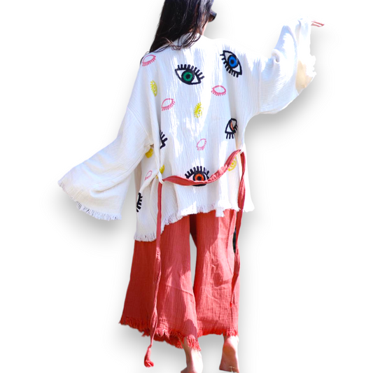 Evil Eye Natural Cotton Kimono Jacket Pants Set