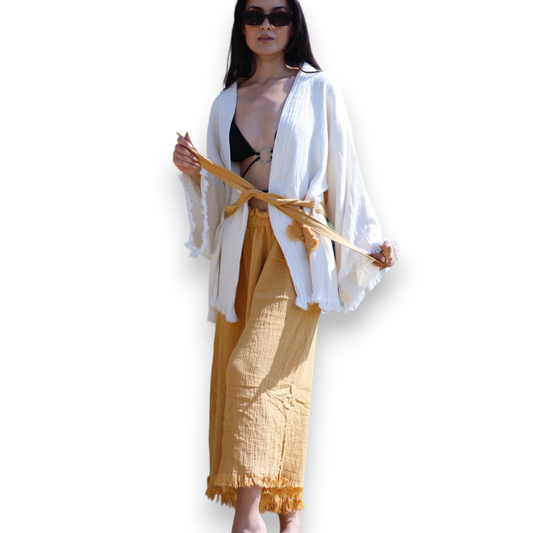 Natural Cotton Hand-Made Beach Kimono Kaftan Set