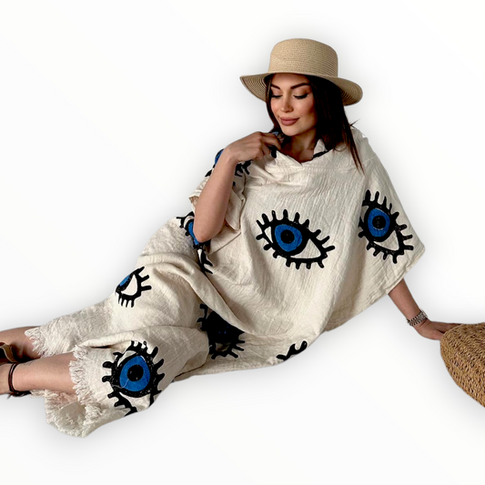 Turkish Towel Surf Poncho, Beach Poncho, Changing Poncho, Eye Design Poncho
