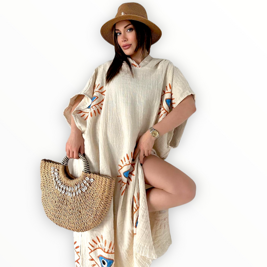 Turkish Towel Surf Poncho, Beach Poncho, Changing Poncho, Eye Design Beach Dress