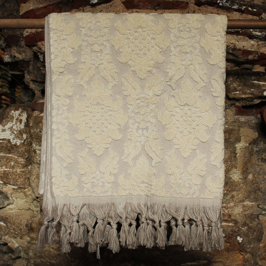 Damascus Design Hand Wowen Natural Cotton Grey Bath Towel