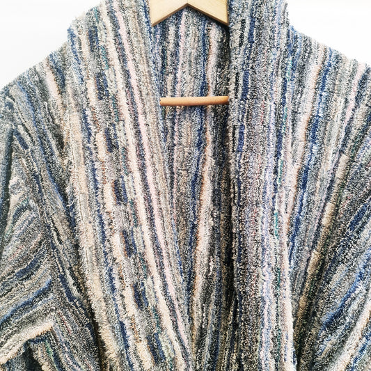 Turkish Terry Towel Bathrobe Multi Grey Stripe Design
