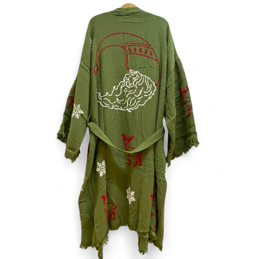 Christmas Design Kimono Robe - Hand Made & Hand Print