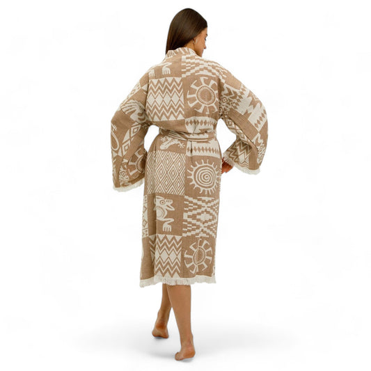 Natural Cotton Turkish Towel Kimono Robe & Towel Set
