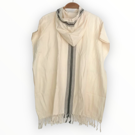 Hand Woven Turkish Towel Hooded Poncho Grey