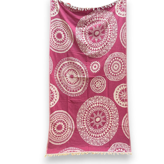 Hand-Woven Cotton Turkish Towel Pestemal Mandala Design