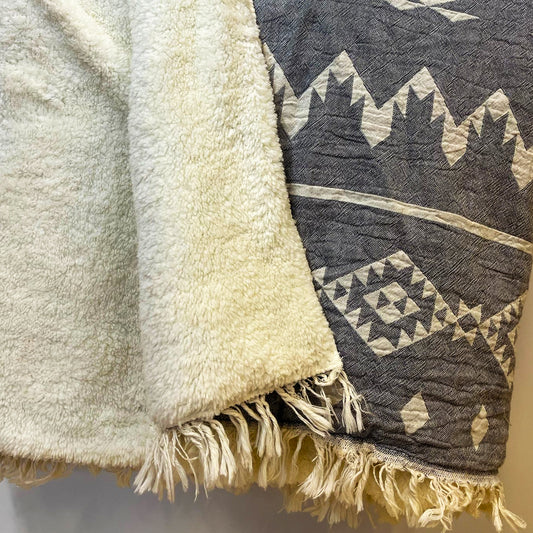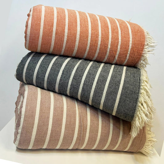 Hand Print Natural Cotton Turkish Towel Blanket - Bed Cover