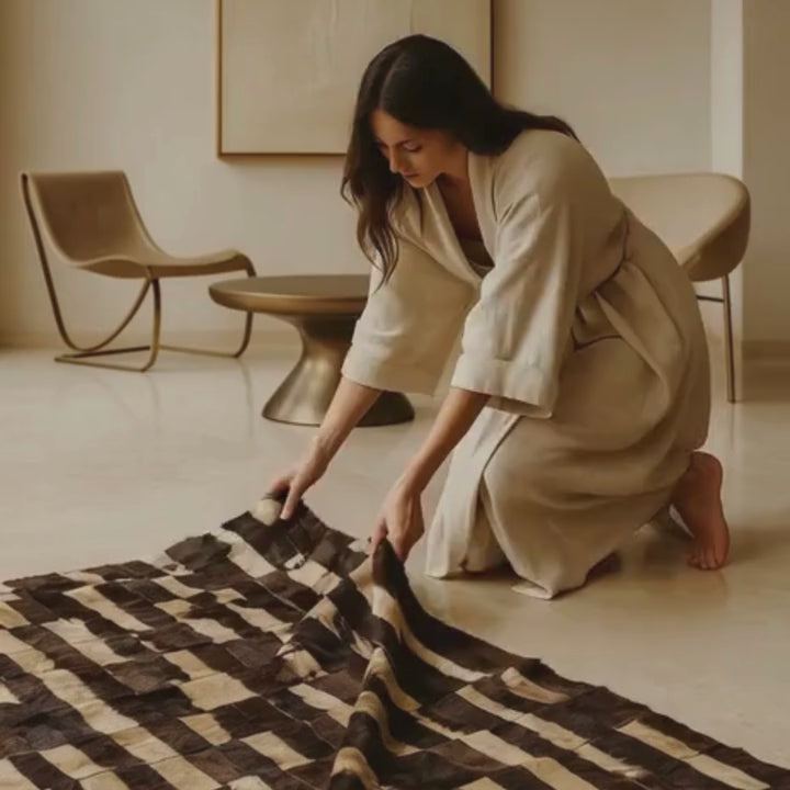 Each rug is handcrafted by skilled artisans who carefully stitch together premium leftover pieces of genuine antilope leather, giving new life to materials that would otherwise go to waste.
