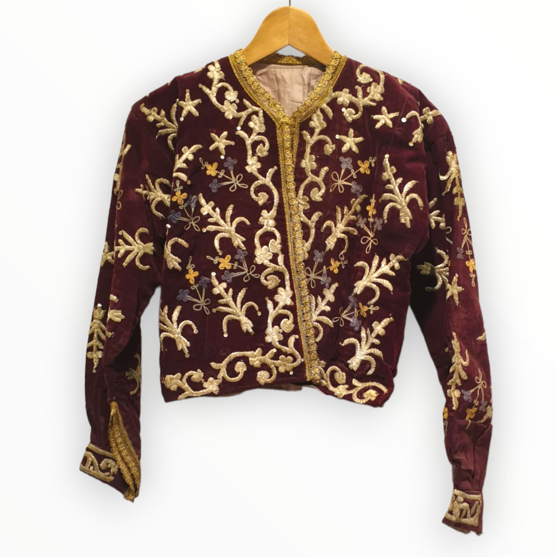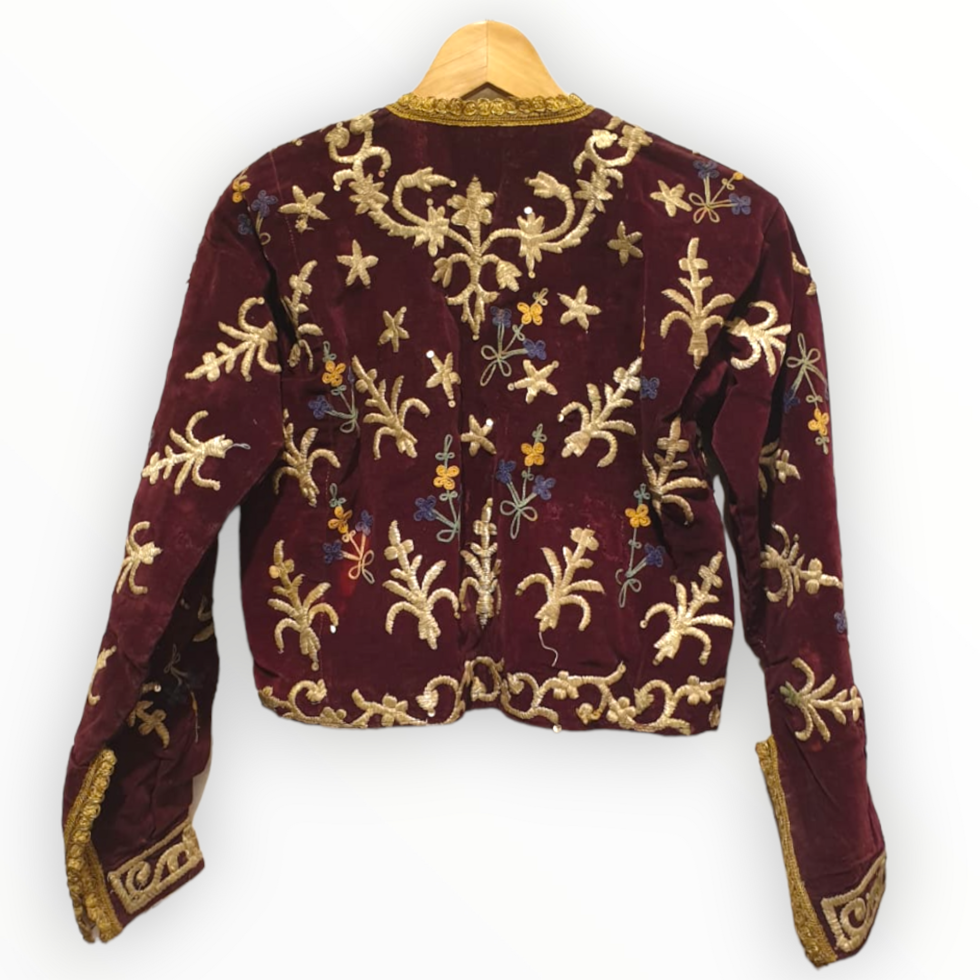 Antique Ottoman Anatolian Bindallı Jacket is made of Purple Velvet. Antique Ottoman Anatolian Bindallı Jacket embroidered with Gold Dival.