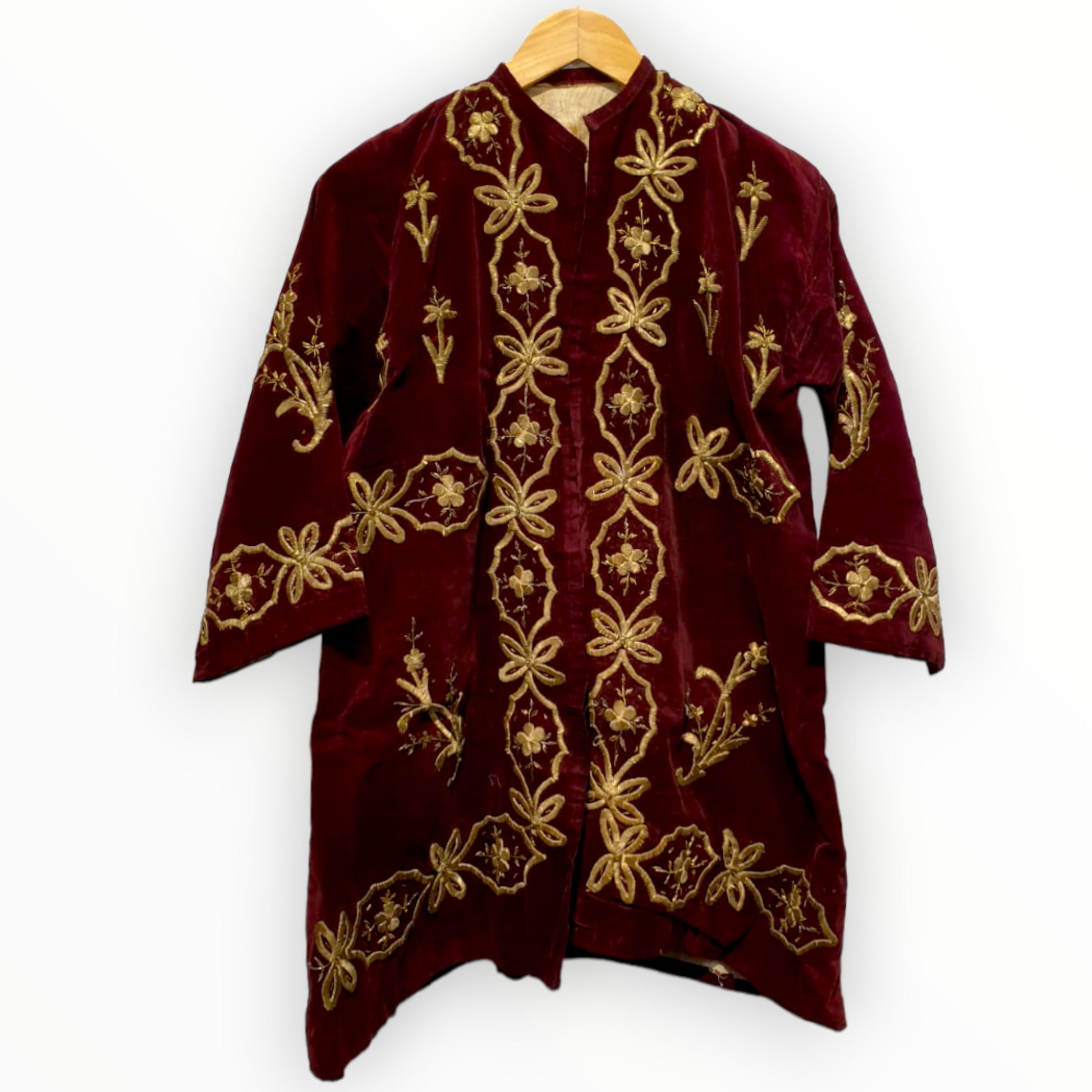 Antique Ottoman Anatolian Bindallı Jacket is made of Purple Velvet. Antique Ottoman Anatolian Bindallı Jacket embroidered with Gold Dival.