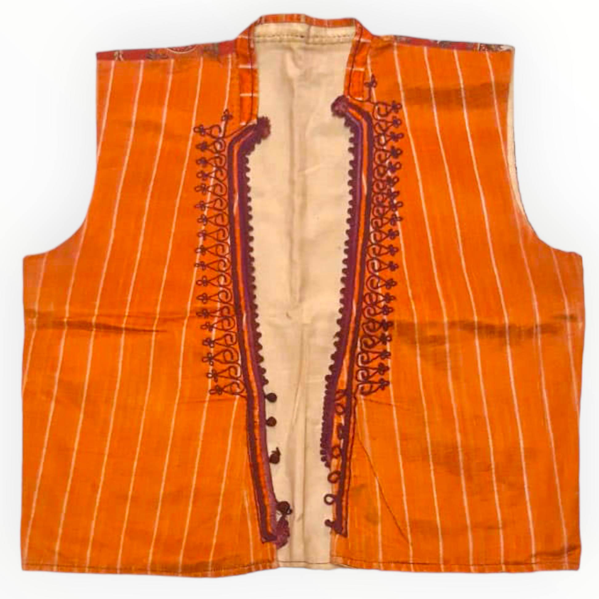 Antique Ottoman Anatolian Cropped Vest - Turkish Folk Cepken has embroidery and patchwork inside the front.