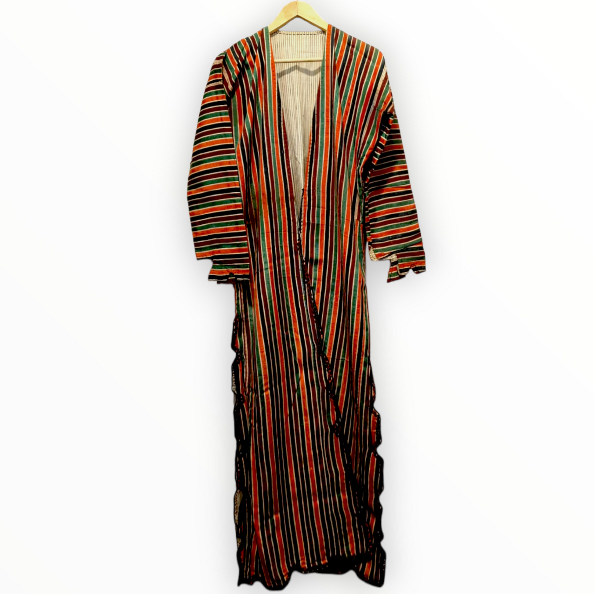 Antique Ottoman Anatolian Traditional Ceremony Dress is Collector’s Item. It was beautifully designed with handwoven silk fabric. It is completely hand-stitched. It has been hand embroidered and patchworks inside. It is traditionally called " Kutnu".
