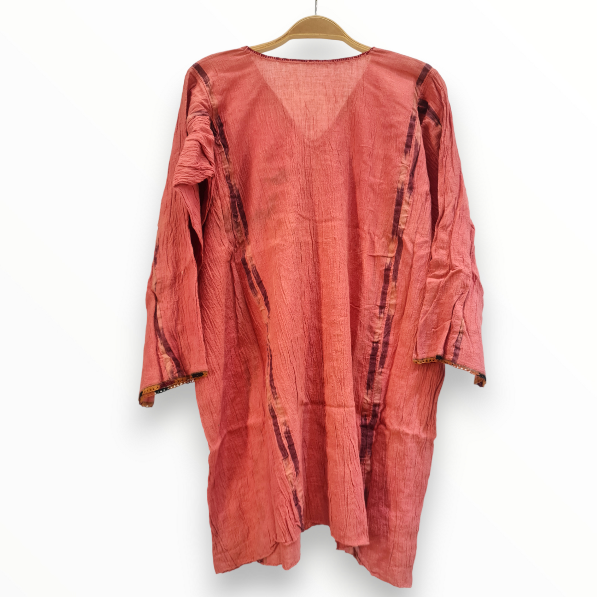 Imagine the whispers of the past that emanate from its silky texture, connecting you with the women of yesteryears who wore it with pride. Embrace the rich history and cultural significance that this Antique Turkish Hand-Woven Silk Women Shirt carries, and feel the timeless allure of Anatolian traditions.