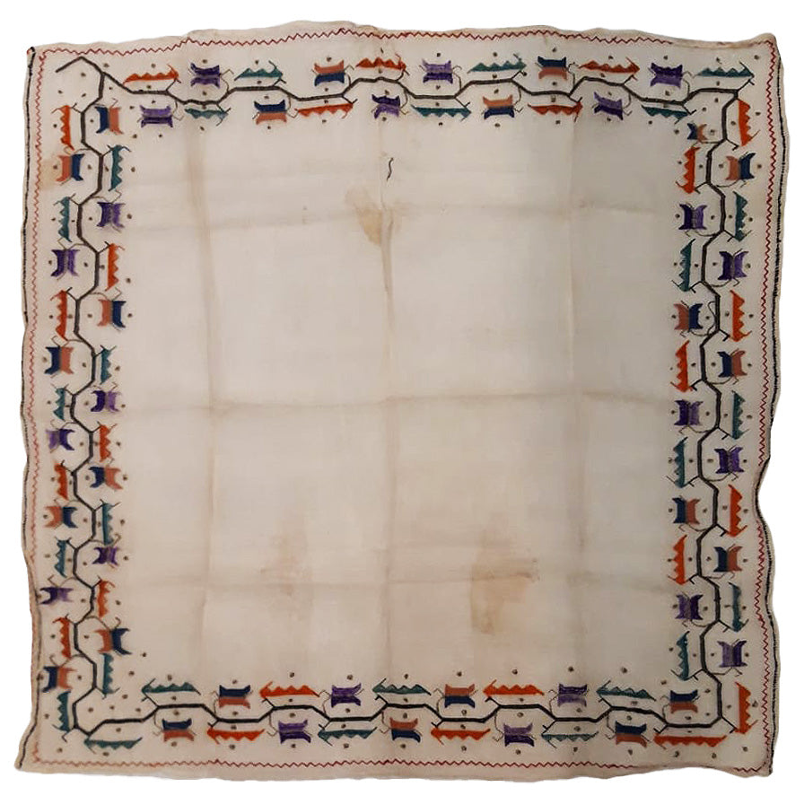 Antique Turkish Ottoman Embroidery Square Textile