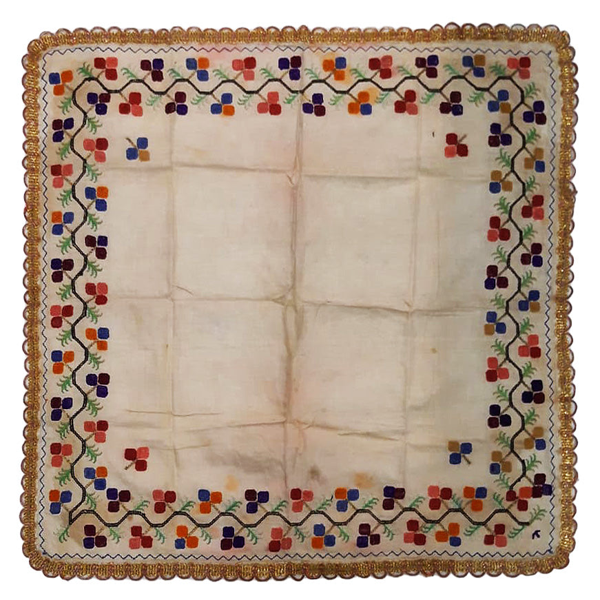 Antique Turkish Ottoman Embroidery Square Textile is a collection piece with multi-colour hand-embroidery and metallic embroidery at all edges.
