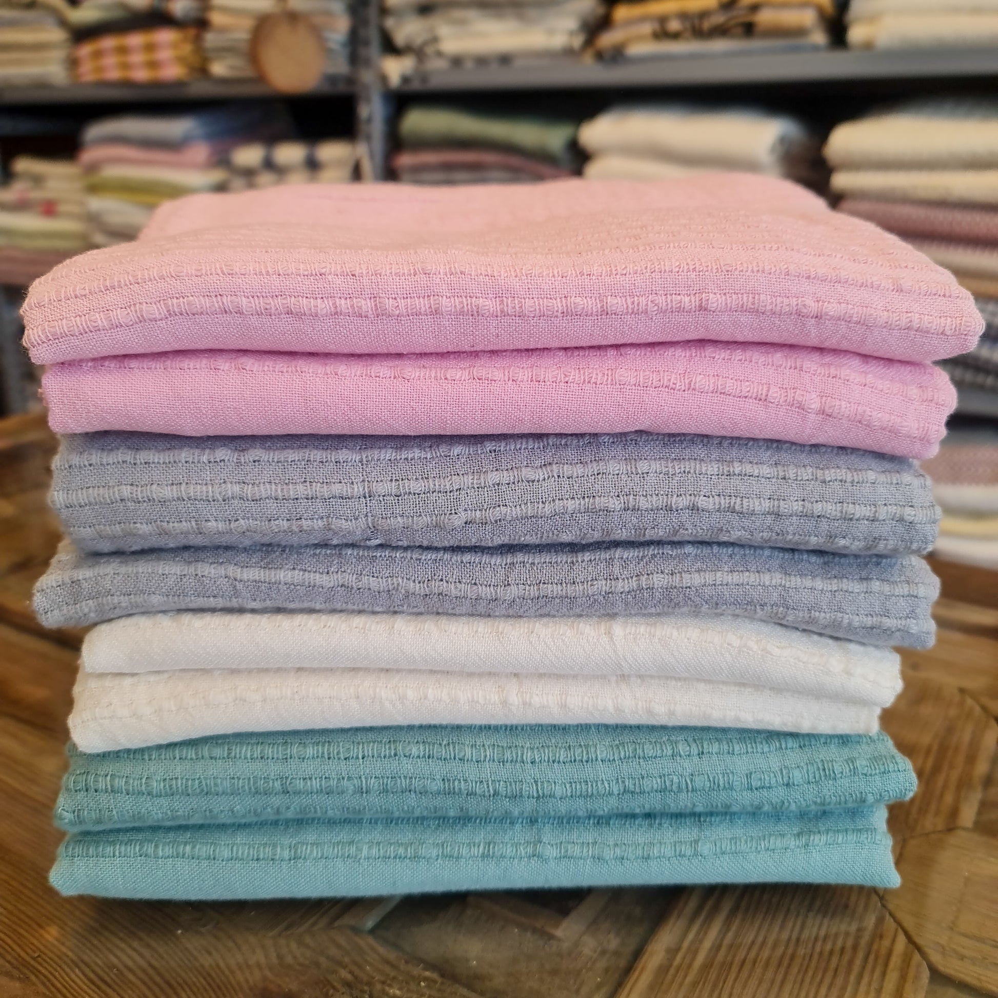 Turkish towels dry quickly and improve in softness and absorbency with each wash. Conveniently sized, elegant, and useful.