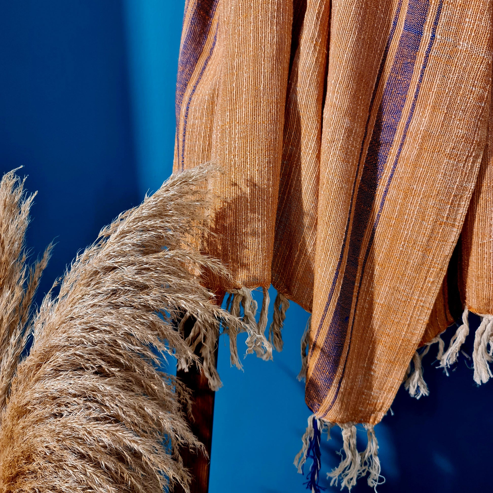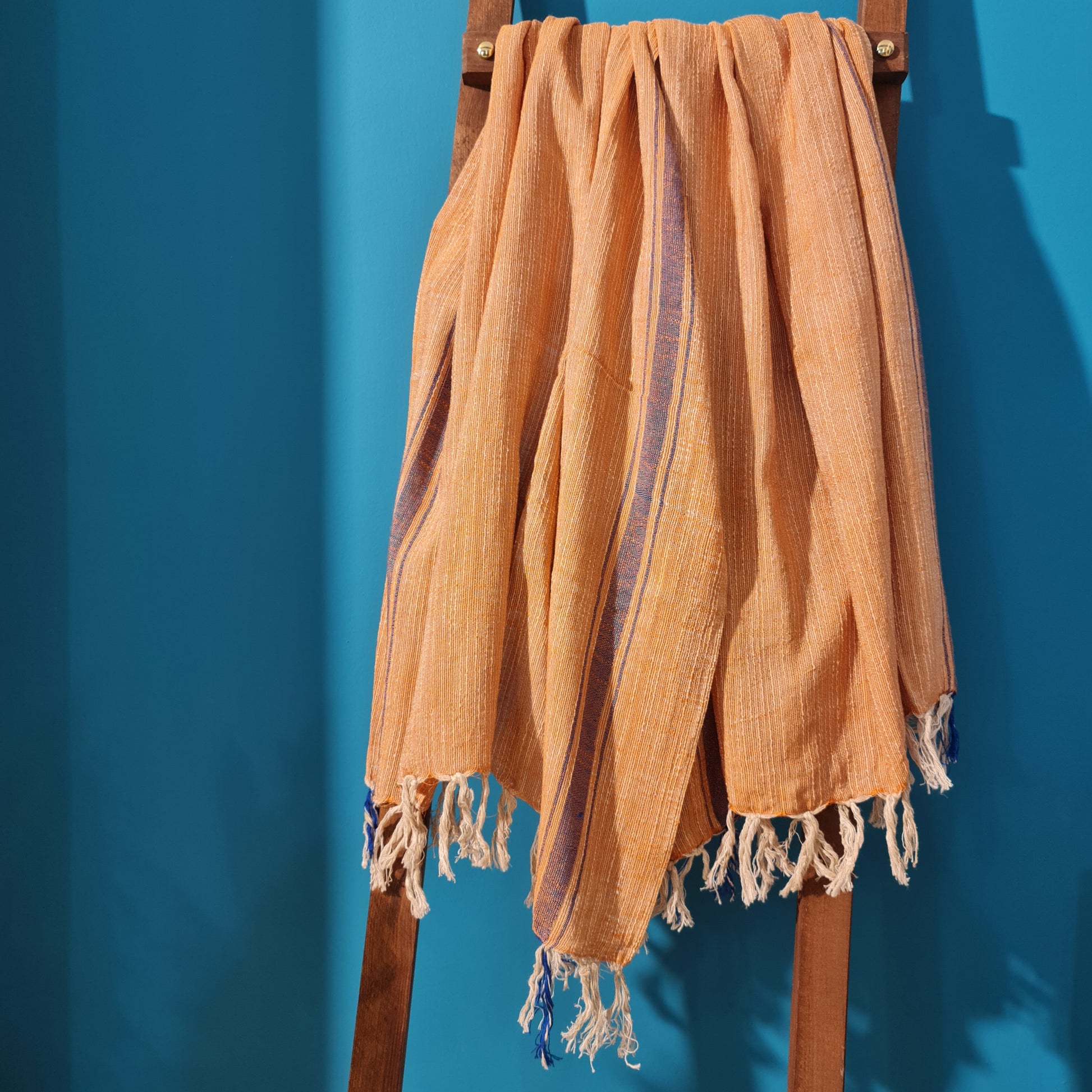 This Hand-Woven Pure Silk Turkish Towel Pestemal is made of Premium Quality Pure Silk. Hand-Woven and Hand-Dyed with Natural Dyes.